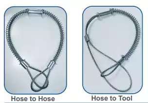 En operaciones que involucran uso de compresores, tanques presurizados o vapor es imprescindible utilizar cables de seguridad que mantengan unidos los extremos de las mangueras para minimizar el riesgo de accidentes.