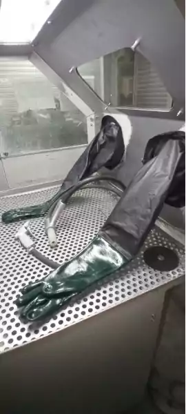 Equipo de operación manual utilizado para limpieza, texturizado y shot peening de piezas con todo tipo de abrasivo como granalla de acero al carbono, granalla de acero inoxidable, granalla de óxido de aluminio, arena, perla de vidrio, entre otros (ahorra un 30 % de abrasivo). Posee un eficiente y compacto sistema de extracción y retención de polvo que permite visibilidad al 90% y 0% de emisión de polvo al ambiente. Su hermeticidad y diseño disminuyen la emisión de ruido.
