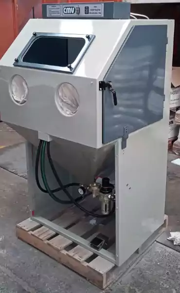 La cabina de CMV es un equipo industrial para trabajo pesado, diseñado para operar 24/7. El nuevo modelo de cabina de granallado por succión elimina el ciclón y el colector de polvo por separado, economizando espacio y consumo de energía.
