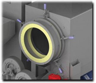 Colector de polvo eficiente con un exclusivo sistema de flujo descendente, reduce el desgaste de los elementos filtrantes, el consumo de aire para la limpieza y la potencia requerida por el sistema.