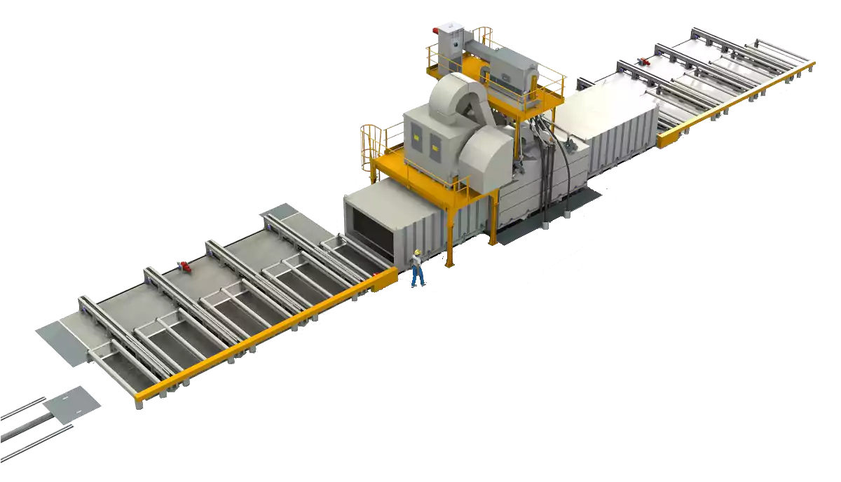 Diseñada para la limpieza y preparación de superficies de vigas, perfiles, chapas, barras planas, angulares, tubos, etc. Proporciona una soldadura de mayor calidad y reduce el consumo de herramientas de corte y mecanizado. También mejora la calidad del corte (plasma, láser oxicorte), ayudando a mantener limpia la planta. Combinado con un flujo de producción adecuado, puede minimizar o incluso eliminar la necesidad de una limpieza y preparación de la superficie posteriormente.