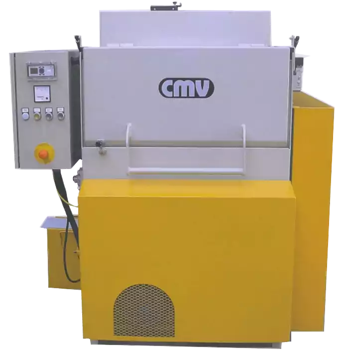 Máquina compacta para el tratamiento de piezas pequeñas y de mediana talla. Posee un tambor enmallado con una capacidad máxima de 100 Kg para cargar piezas de cualquier geometría y peso unitario de hasta 8 kg. El tambor rota sobre rodillos para que las piezas expongan toda su área al impacto del abrasivo, que es disparada por una turbina de alto poder ubicada en la parte inferior del equipo.
