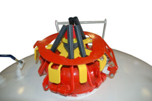 Las características de seguridad incluyen la purga CEN™ (boquilla de expansión controlada), que controla de forma segura la expansión y la velocidad del aire de escape. Este sistema minimiza la posibilidad de abrasión por polvo de los componentes del sistema de escape, reduce drásticamente los niveles de ruido durante la purga a niveles seguros y permite al operador abrir completamente la válvula de escape y despresurizar de manera segura una unidad de 160 pies cúbicos en aproximadamente 8 minutos. Otras características de seguridad incluyen una limpieza con brida de 3″ para un vaciado fácil sin herramientas pesadas, el sistema de seguridad de cierre Halok® que evita que los operadores abran y cierren incorrectamente el cierre de 10″, un sistema Ergo-Ladder® para un acceso seguro y cómodo al cierre de 10″ y Soportes Manway Stay para ayudar en una instalación fácil y correcta de la tapa de la boca de inspección.